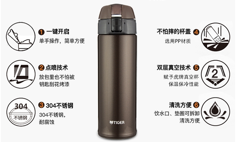 虎牌(Tiger)保溫杯真空簡約時尚直飲杯MMQ-S50C-TV炫棕色500ml