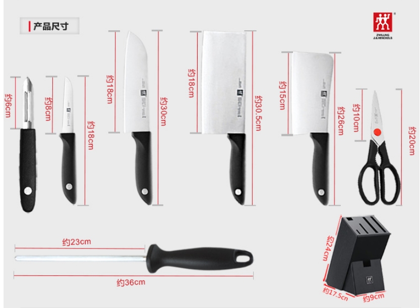 雙立人的四星系列刀具*早出現(xiàn)在1976年,具有里程碑意義。這一套四星木制插刀架套裝包括水果刀、三明治刀、廚房叉、面包刀、砍刀、西廚刀、切片刀、去骨刀、磨刀棒及黑色廚房多用剪櫸木插。