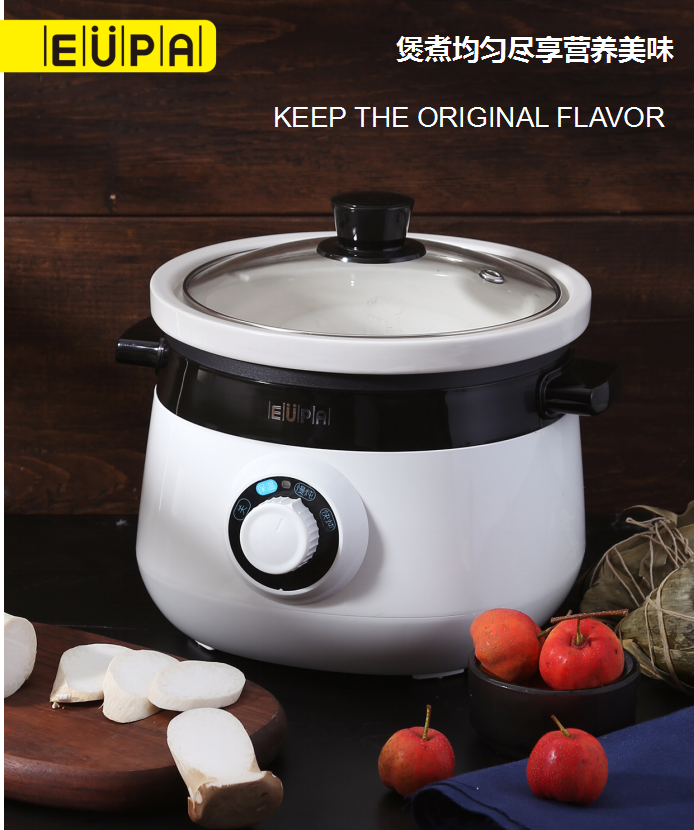 快燉、慢燉、保溫三檔火力調(diào)節(jié)。